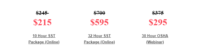 Prices on all SST training has been reduced. We are also including a free Covid-19 awareness and preparedness training course free of charge. If you are still having trouble affording the required training, please call and ask about our payment plans.